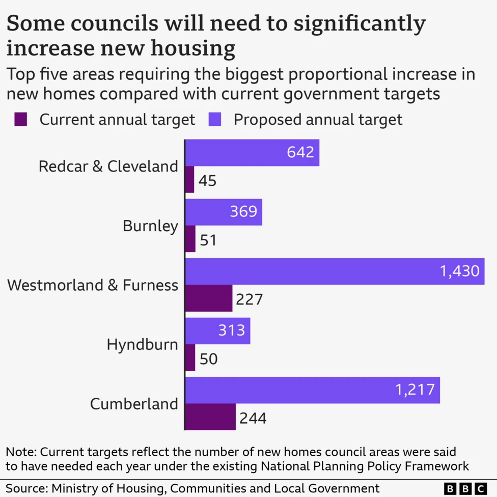 In rural West Lancashire, the yearly housing target for the Labour-run borough council would jump from 166 new dwellings to 605 under the proposed new system.