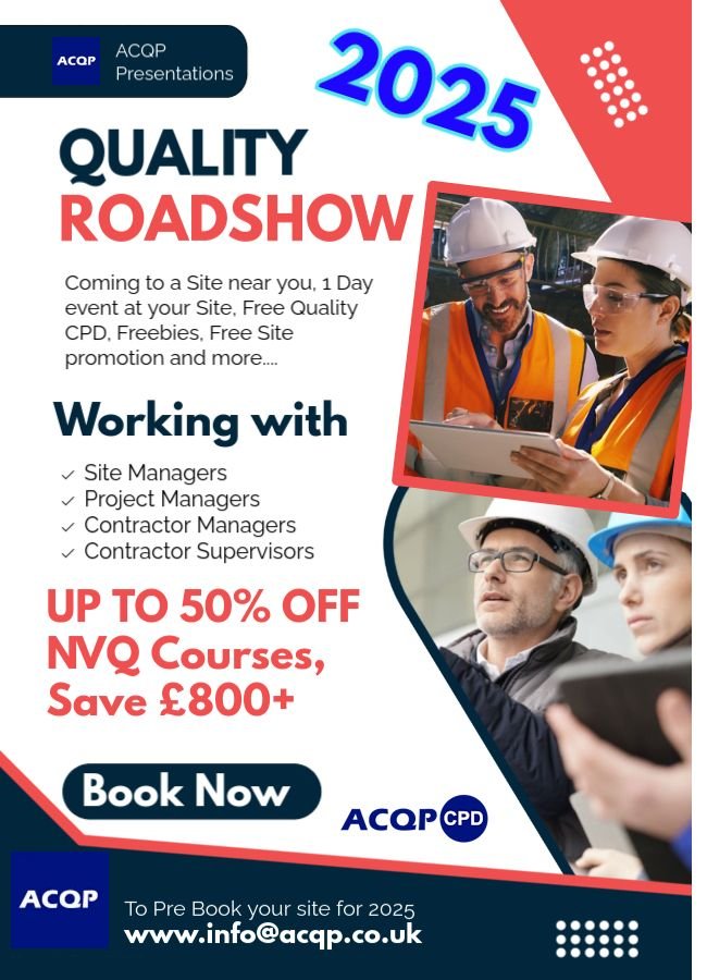 Discounted first years membership, or for free with any NVQ courses booked on the Day, If your looking at getting your team compliant then our ACQP Road Show is ideal for your site.